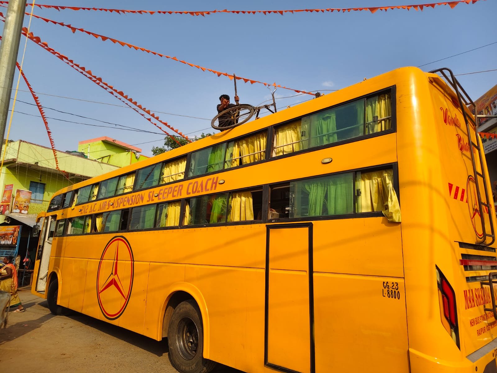 घटना दोपहर करीब 3:51 बजे की है। देवभोग से सवारियों को लेकर मैनपुर आ रही ‘मां शारदा’ यात्री बस (वाहन क्रमांक CG 23L 8800) जैसे ही बस स्टैंड पर पहुंची, बस की छत पर रखी एक साइकिल (लगेज )सीधे ऊपर से गुजर रहे बिजली के सप्लाई तारों में जा उलझी। यह तार पास के ही खंभे से उपभोक्ताओं को सप्लाई देने के लिए खींचा गया था।